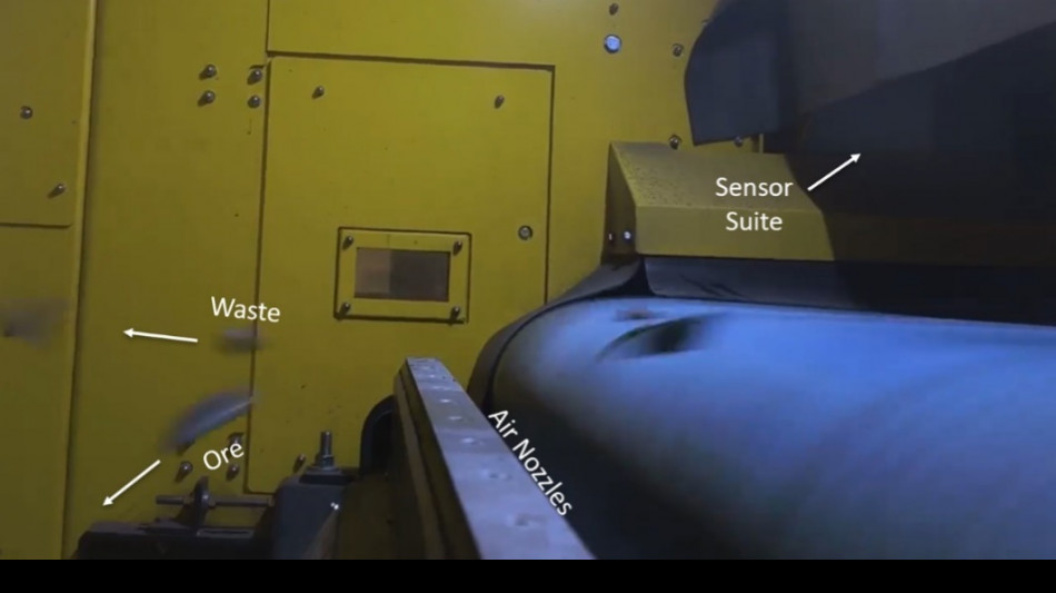 Production rock will be crushed to a 100mm topsize and subjected to a sensor-based ore sorting process wherein each particle of rock will be scanned while passing under a sensor array on a conveyor belt. Particles identified as non-mineralized (dilution) will be removed to a reject bin via a puff a compressed air, while the remaining particles will be loaded into a sealed ore container for transport. See the company's April 8, 2025 news release for additional information regarding sensor-based ore sorting of New Amalga material.